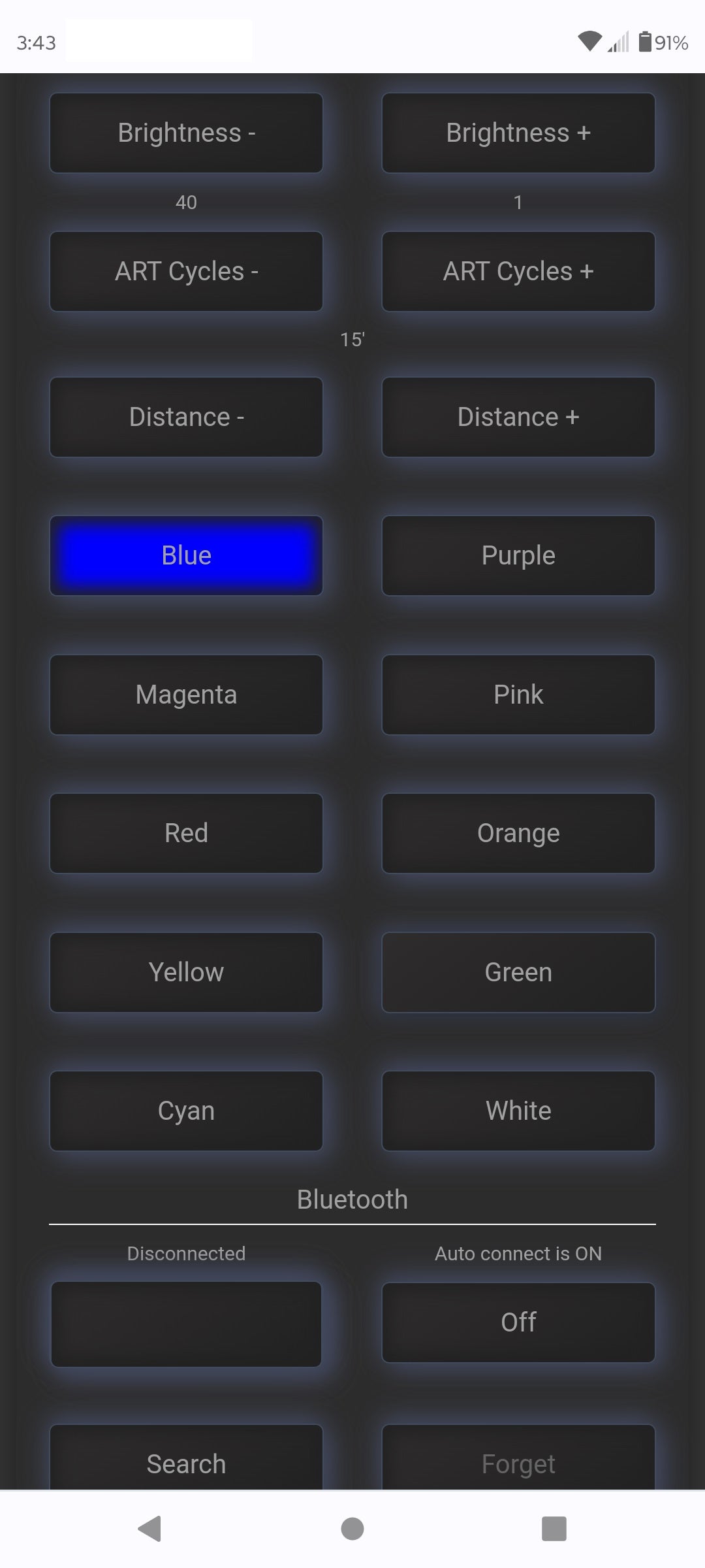 The color is adjustable to: Blue, Purple, Magenta, Pink, Red, Orange, Yellow, Green, Cyan, White. Default is Blue.